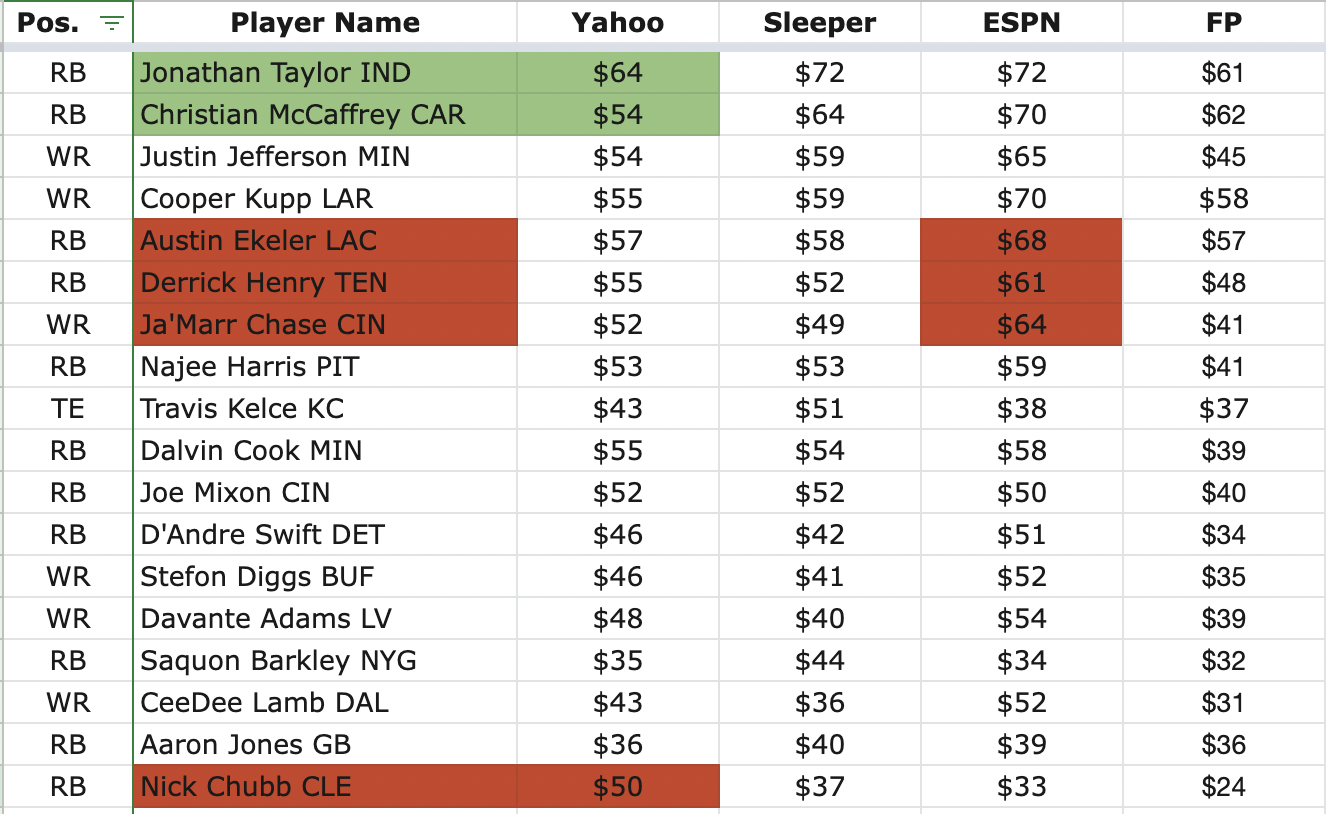 See the real auction room values from the platform you’re drafting on and compare this value to the AAV across all major platforms