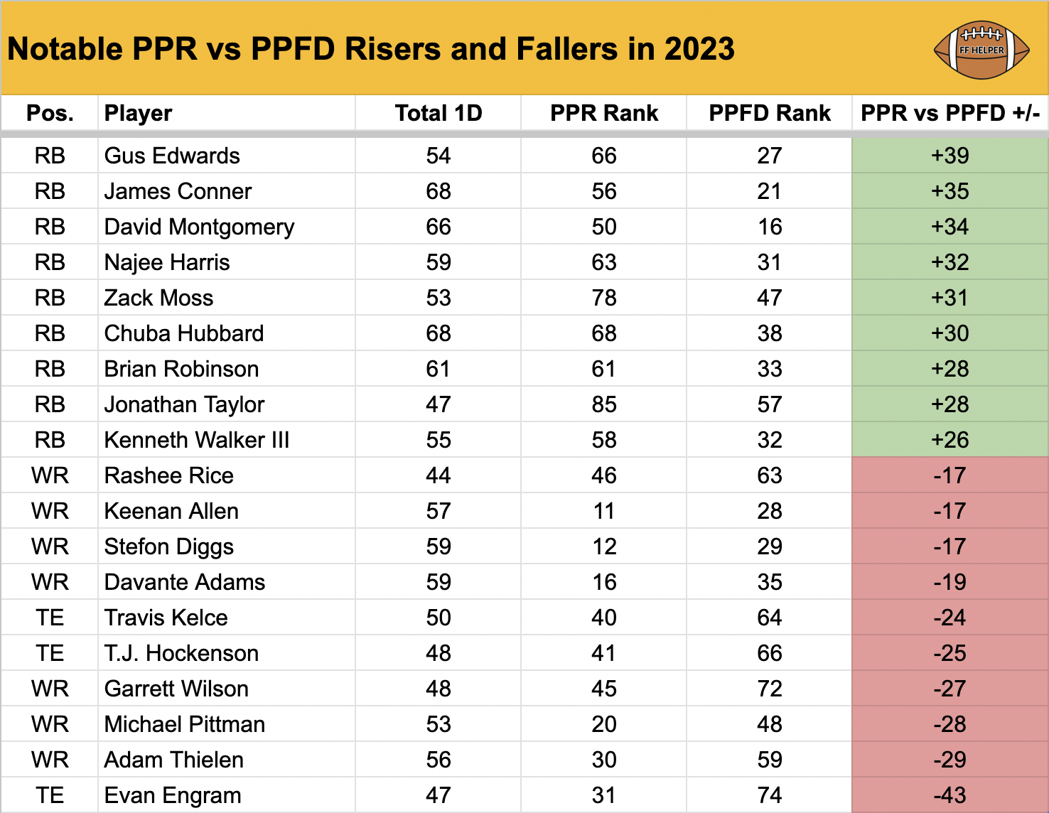 Customize your cheat sheet to see how the PPFD scoring in your league differs from traditional PPR and Standard leagues.